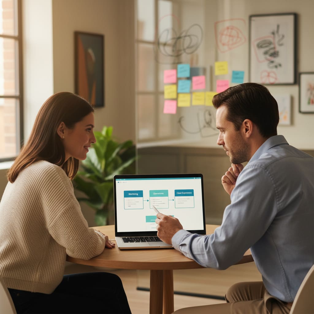 For leaders who are ready to move from ideas to implementation. Together we design workflows, choose and connect tools, and build simple systems that support your marketing, operations, and client experience—without creating a tech monster no one wants to use.